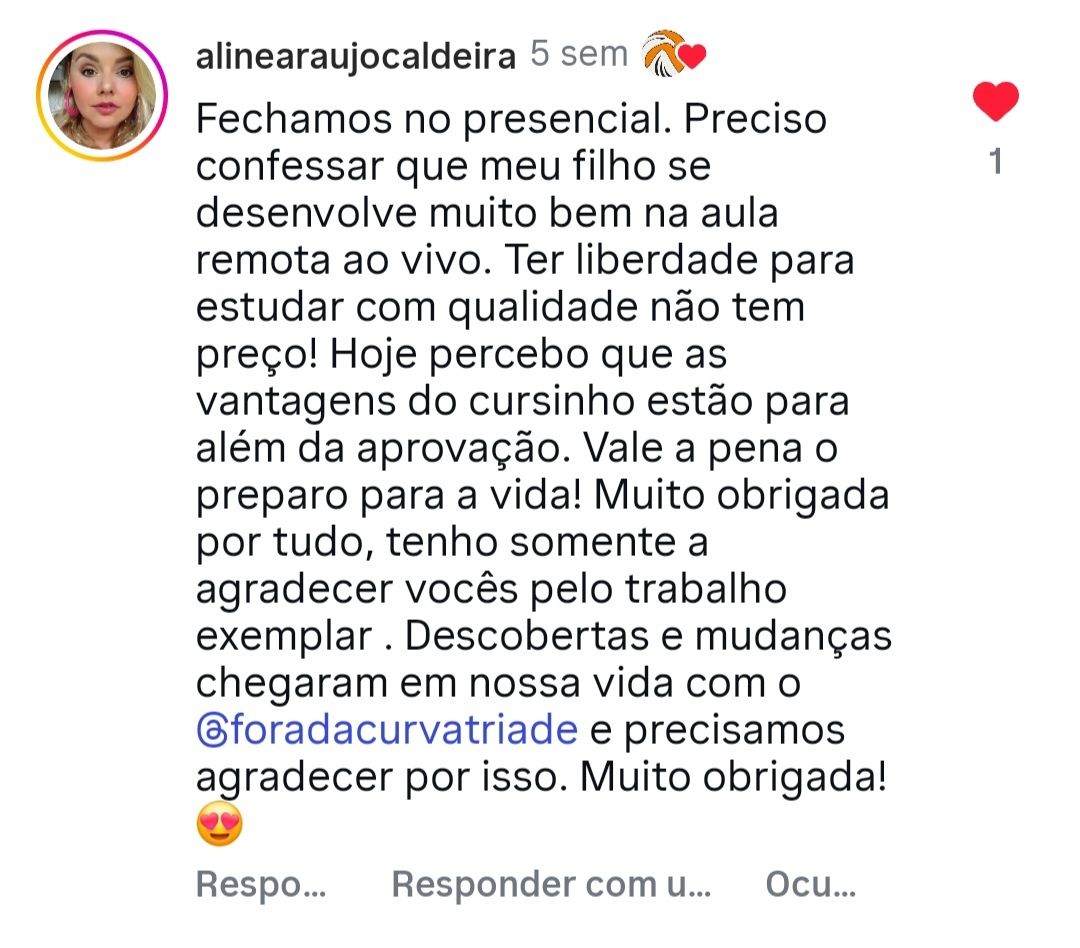 Ninguém no Brasil aprovou tantos alunos no Colégio Militar quanto o Fora da Curva. Por isso, ingressar em nosso curso on-line é dar ao seu filho a chance de preparar-se com os melhores!